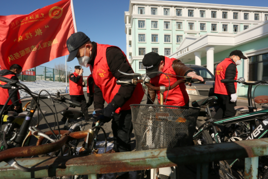 会后,退役军人(橄榄绿)志愿服务队组织全体退役军人参加了校园环境秩序整治志愿服务活动,对学生公寓门前的自行车停放场地进行规整。