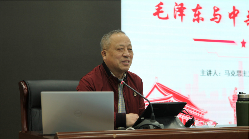 马克思主义学院杨彬教授担任本期讲座主讲嘉宾。他以《从毛泽东看中共百年党史》为题,先后从革命家、战略家、政治家、诗人等几个维度,对伟人毛泽东光辉的一生,做了生动细致的讲解。