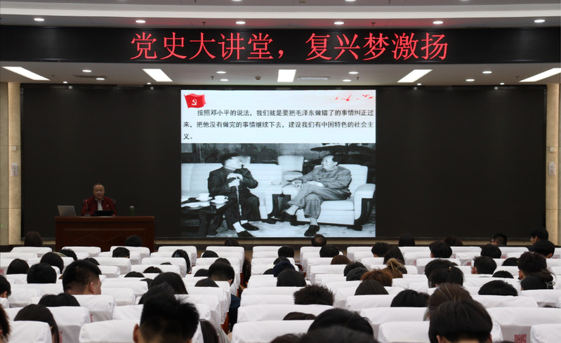 为推动党史学习教育的常态化,从党的百年奋斗历程中,深度提炼“奋进新时代,共圆中国梦”的思想资源,深化用习近平新时代中国特色社会主义思想铸魂育人,3月27日晚,2023年首期“党史周末大讲堂”主题讲座在图书馆报告厅举行。本期活动由党委宣传部和马克思主义学院联合举办,党委宣传部部长蔡玉生、马克思主义学院院长刘学伟、思想政治理论课教师代表,以及部分学生党员、入党积极分子和党史爱好者参加。