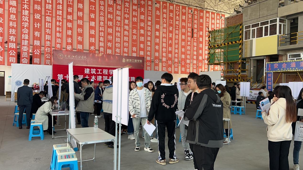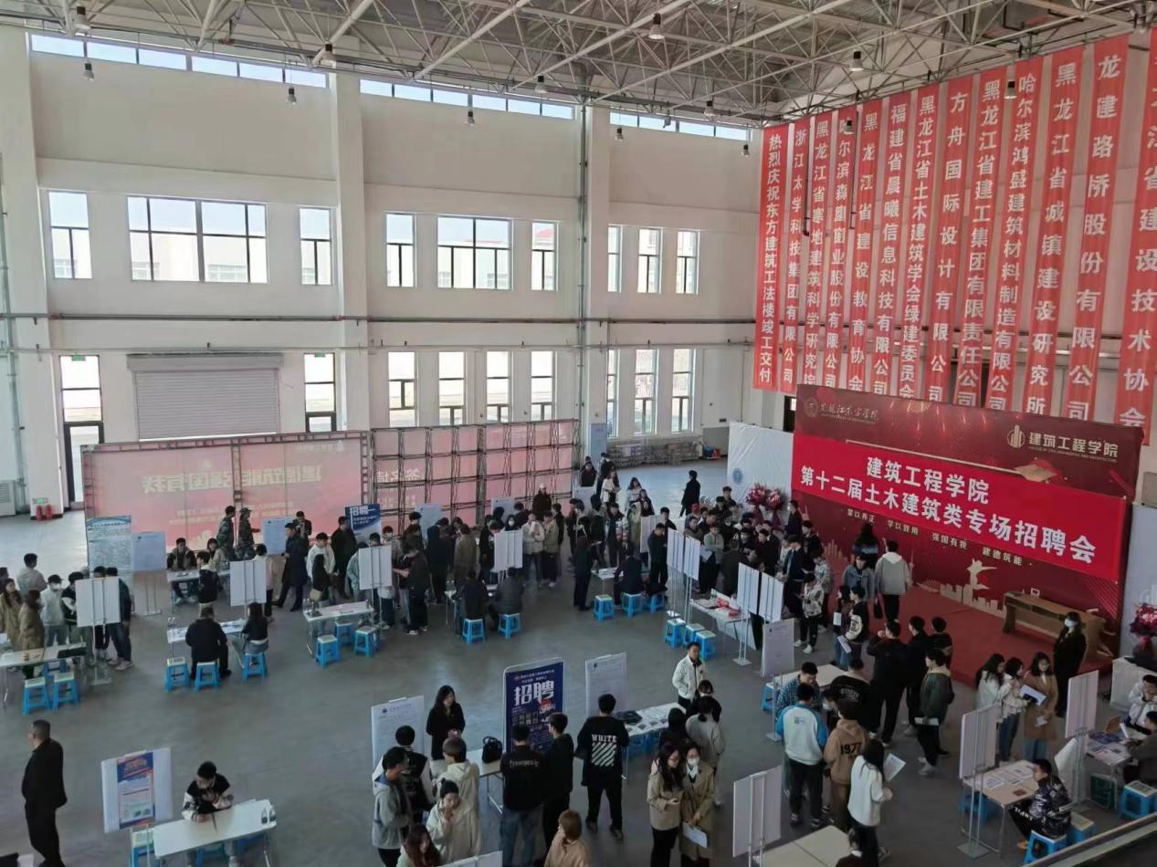 4月26日上午,我校在工法楼实训中心举办第十二届土木建筑类专场招聘会。本次招聘会共吸引“黑龙江省建筑安装集团有限公司、黑龙江省建工集团有限公司、青岛一建、黑龙江农垦路桥有限公司、安吉县交投集团、北大荒建设集团有限公司”等40余家知名企业来校招聘,招聘岗位300余个,精准对接学院专业,涉及建筑学、土木工程、工程造价等行业。招聘会现场,用人单位通过展板和宣传单的方式向毕业生展示单位的具体情况,毕业生针对薪资待遇、岗位需求和晋升渠道等问题和企业深入交流,部分学生现场和企业达成签约意向。