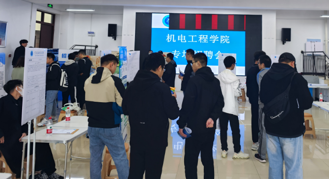 4月24日,机电工程学院在主楼A区110招聘大厅举行2023届毕业生专场招聘会。本次招聘会由学校招生就业工作处主办、机电工程学院承办。