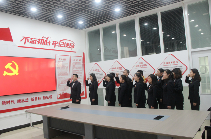 为全面贯彻党的二十大精神,深入学习贯彻习近平新时代中国特色社会主义思想主题教育,让广大党员不忘入党初心,坚定共产主义信念,强化共产党员的责任感、使命感,增强党组织的凝聚力及战斗力,5月15日,图书馆直属党支部开展“重温入党誓词”主题党日活动。在鲜红的党旗下,全体党员佩戴党员徽章,举起右手,握紧拳头,由党支部书记张红岩同志领誓,支部全体党员郑重宣誓。在铿锵的誓言中,党员干部的初心受到洗礼,理想信念更加坚定。