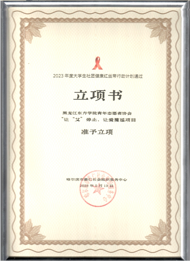 日前,由黑龙江省希望工程捐助中心、哈尔滨市疾病预防控制中心主办,黑龙江省青年联合会指导,省青少年发展基金会、省志愿服务基金会支持,哈尔滨市嘉仁社会组织服务中心执行的2023年度“哈尔滨大学生社团健康红丝带行动计划”立项签约实施启动会在黑龙江省青少年发展基金会召开,哈市近40所高校项目指导教师及团队成员受邀参加,我校团委副书记、“红丝带”项目指导教师朱文健带领2位项目相关负责人参加此次启动签约会。