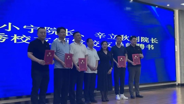 刘小宁和副院长辛立秋共同为优秀校友颁发校友导师聘书。