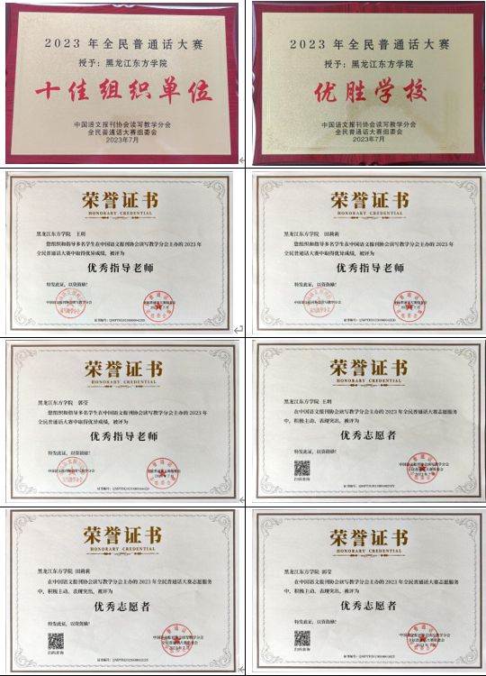 日前,由中国语文报刊协会读写教学分会主办的2023年全民普通话大赛落下帷幕,我校荣获“十佳组织单位”、“优胜学校”称号,人文学院王玥、田莉莉、郭莹三位教师获得“优秀指导教师”“优秀志愿者”荣誉称号。