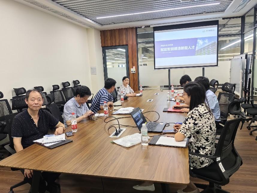 9月22日下午,调研组赶到杭州品茗科技有限公司,该公司是目前建筑施工教育方面的领先企业。品茗数字教育事业部总经理倪斌、副总经理盛黎、渠道经理郑兰桥、解决方案部总监董汉林和工程师朱海洲参加交流讨论会。董汉林介绍了数字教育事业部的业务范围,内容和实际案例等。双方就人才特色化培养,1+x智能建造项目等内容进行交流,双方表示希望先在产学合作协同育人项目上有所合作。