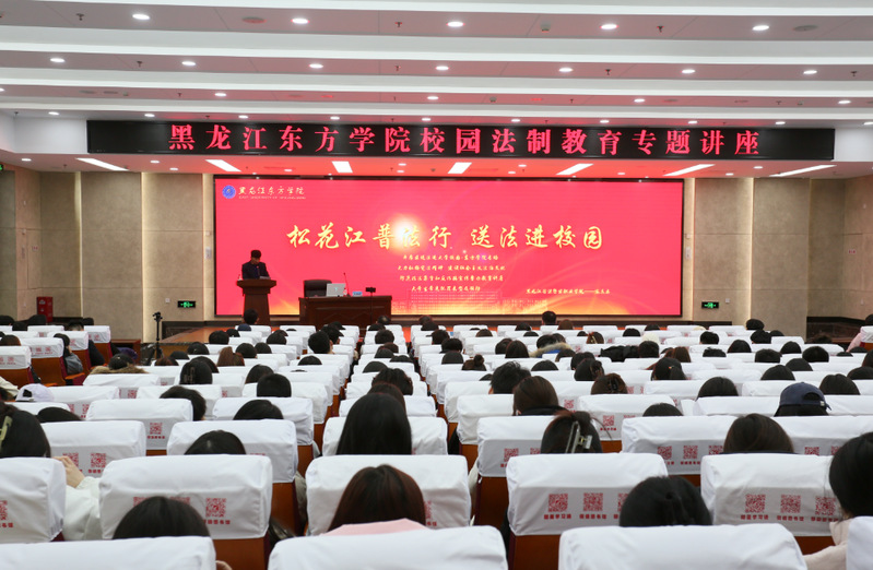 为了营造我校良好的法制教育环境和氛围,增强学校推进法制教育的时效性,提高同学们安全法制意识,11月29日下午,平房区司法局主办的“平房区送法进大学校园”系列活动——东方学院专场讲座在我校图书馆报告厅举行。本次活动特邀请省司法警官职业学院的宋玉立警官为我校学生上了一堂生动的法制教育课。