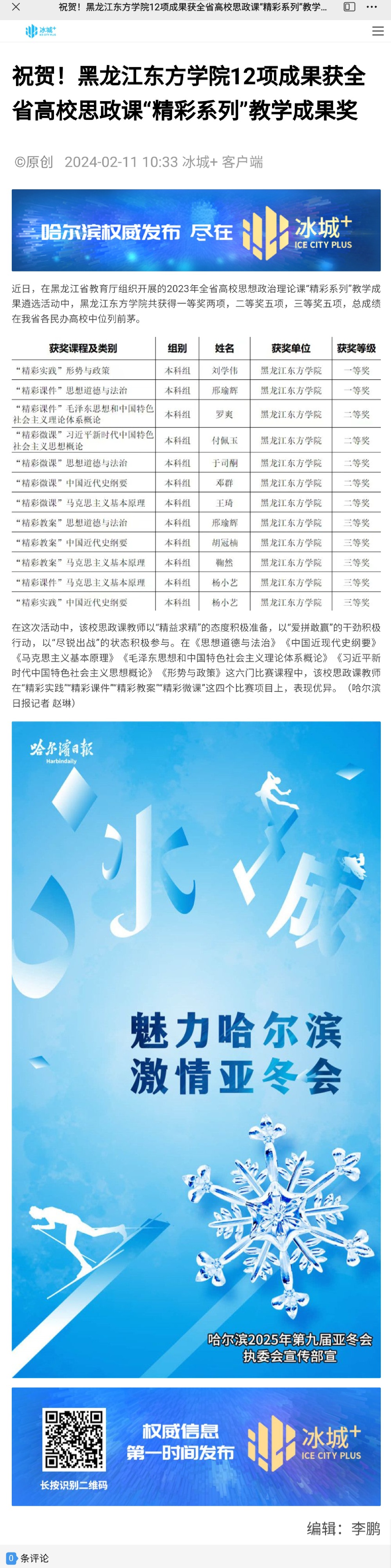 冰城+:祝贺! 黑龙江东方学院12项成果获全省高校思政课“精彩系列”教学成果奖