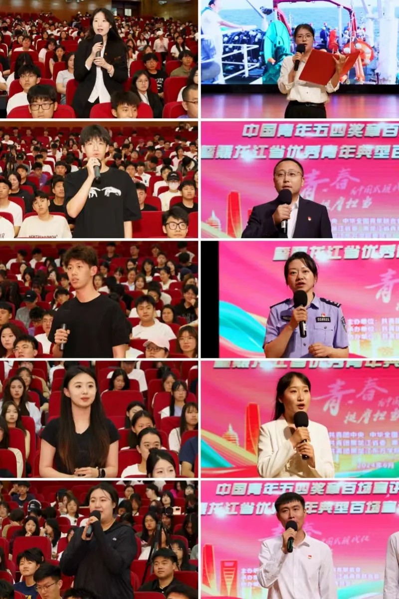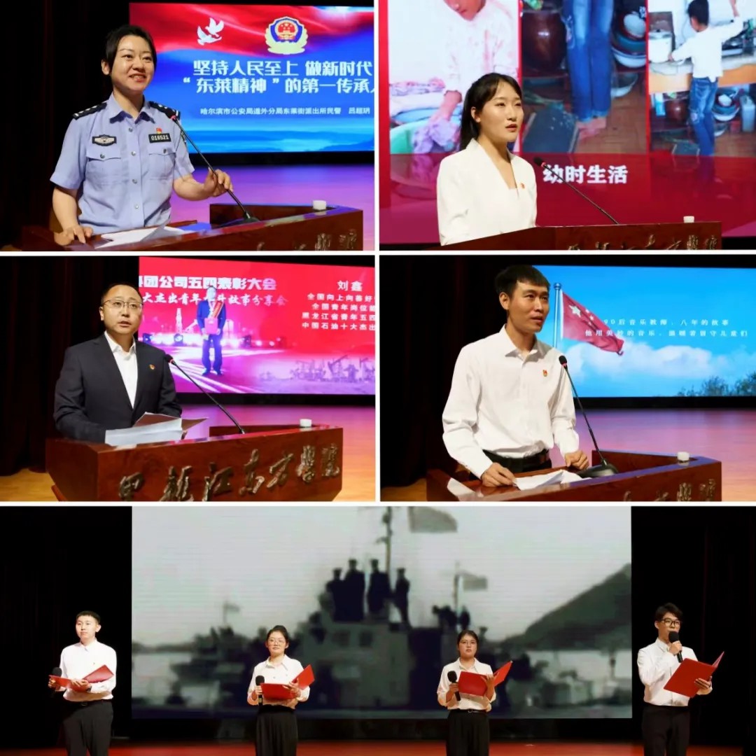 宣讲活动中,第24届黑龙江省青年五四奖章获奖集体哈尔滨市公安局道外分局东莱街派出所代表吕超玥以《坚持人民至上 做新时代“东莱精神”的第一传承人》为题,讲述了东莱街派出所民警始终牢记全心全意为人民服务的宗旨,始终传承“百家熟、拒腐蚀、鱼水情”三件“传家宝”,始终践行“爱人民、讲奉献、保平安”精神内涵,以人民至上的实际行动坚守了初心和使命,谱写了警民关系新篇章的故事。第26届中国青年五四奖章获奖者刘羲檬以《向阳而生 逐光前行》为题,讲述了她坚守“有妈妈的地方才是家”的信念,毅然“带着妈妈上大学”“带着妈妈去支教”,用担当与坚守书写母女情深、孝老爱亲的动人故事。第24届黑龙江省青年五四奖章获奖者刘鑫以《点燃创新引擎 诠释使命担当》为题,讲述了负责古龙页岩油勘探开发一体化研究工作,创新形成低熟页岩油原位转化地质评价方法和实验流程,证实松辽低熟页岩油的资源潜力,为大庆油田该领域攻关实现零的突破的奋斗故事。第28届中国青年五四奖章获奖者李平以《用音乐为乡村儿童插上逐梦飞翔的翅膀》为题,讲述了他毕业后选择回到家乡,在乡村任教,自费为乡村孩子提供乐器,创办“村里的孩儿”音乐班,陪伴留守儿童成长,励志改编歌曲在网络平台粉丝超百万,点赞量破千万的温暖故事。第28届中国青年五四奖章集体哈尔滨工程大学水声通信与定位技术创新团队代表以《逐梦水声、为国听海》为题,讲述了团队牢记习近平总书记视察哈工程时重要讲话精神,传承“哈军工”优良传统,深耕水声通信与定位技术,打破国外技术封锁,坚持科技自立自强,紧贴强国强军需要,不断攻克深远海水下信息传输卡脖子技术难题的故事。
