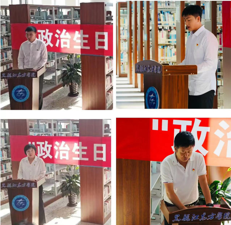 本科生党员代表王世尧、研究生党员代表安禹赫分别发言。青年教师党员代表王晓佳、银龄教师党员朱洪文分别发言,表示收到政治生日卡更加坚定了理想信念,也是是对自己理想信念的一次提醒和强化,将以此次颁发政治生日卡为新的起点,砥砺前行,勇于担当,在本职岗位上再立新功。