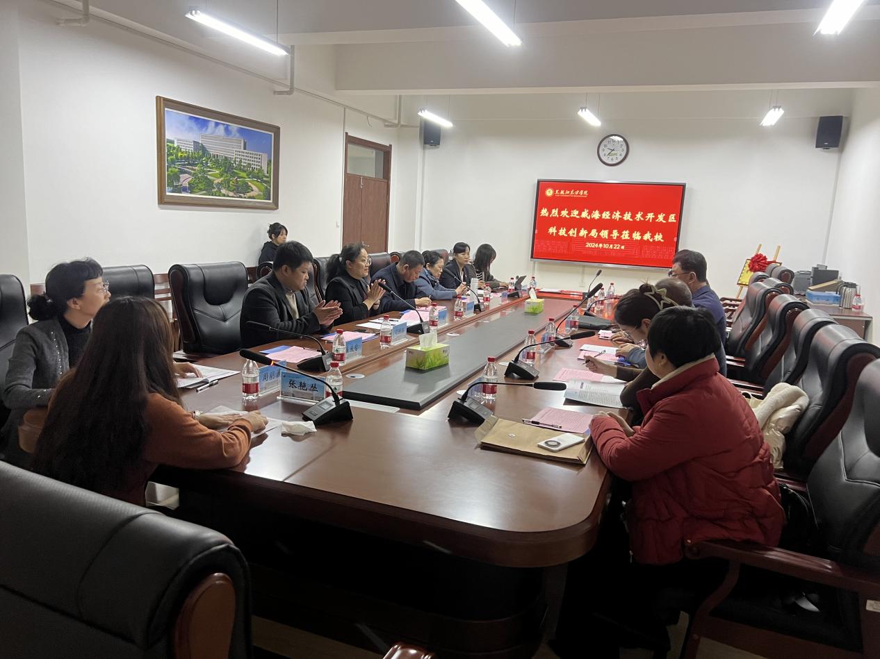 为进一步深化产教融合,开拓名企就业岗位,10月21日,威海经济技术开发区科技创新局相关负责人来校交流洽谈校地合作相关事宜,“校地联动”积极拓展校地企合作平台,共同搭建校政企三方共赢“大舞台”。威海经开区科技创新局党组成员于日建、威海经开区科技创新局人力资源服务中心工作负责人赵炳华、威海市相关企业人力资源代表,我校就业指导处处长吴迪及各学院就业工作负责人参加会议。