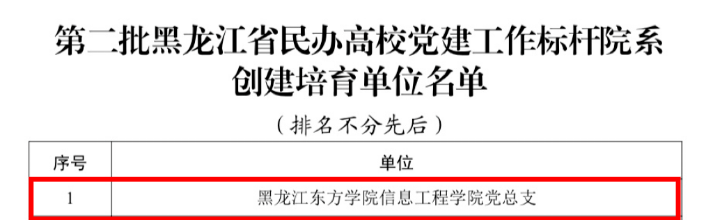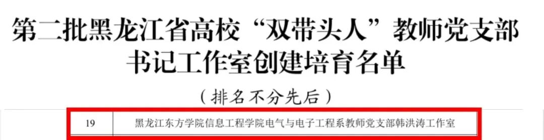 日前,省委教育工委公布了第二批黑龙江省民办高校党建“示范创建”和第二批黑龙江省高校“双带头人”教师党支部书记工作室创建培育名单。我校信息工程学院党总支入选黑龙江省民办高校“党建工作标杆院系”创建培育单位;机电工程学院教工党支部、食品工程学院化学与环境工程系教师党支部入选黑龙江省民办高校“党建工作样板支部”创建培育单位;信息工程学院电气与电子工程系教师党支部韩洪涛工作室入选“黑龙江省高校‘双带头人’教师党支部书记工作室创建培育名单”。