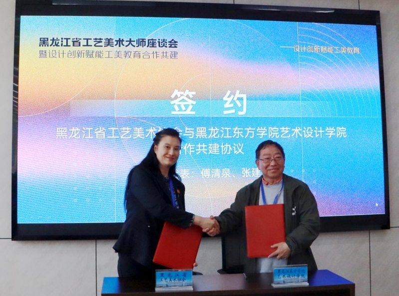 此次座谈与合作共建会议,是我省高校首次大规模汇聚行业大师资源的重要实践,推动了工艺美术与设计教育的深度融合,为我校设计教育注入全新活力,有力促进了地域文化传承与产业创新发展。通过大师与高校协同联动,实现传统工艺、现代设计与地域经济的有机交融,为行业与教育界合作树立典范。会议不仅搭建起龙江工美行业交流合作的坚实桥梁,更开启设计创新赋能工美教育的崭新篇章,标志着我校设计教育迈向更具影响力的发展新征程。