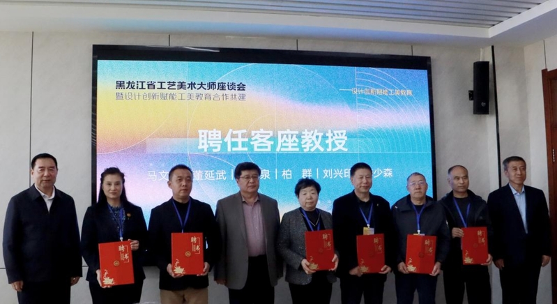 签约仪式结束后,学校聘任马文侠、董延武两位中国工艺美术大师,付清泉、柏群、刘兴印、李少森四位黑龙江省工艺美术大师为客座教授。他们将充分发挥工艺美术大师的行业资源与实践经验优势,助力学校培养“理论与技艺兼备” 的高素质设计人才,同时为传统工艺的保护、创新与传播搭建更广阔的平台。