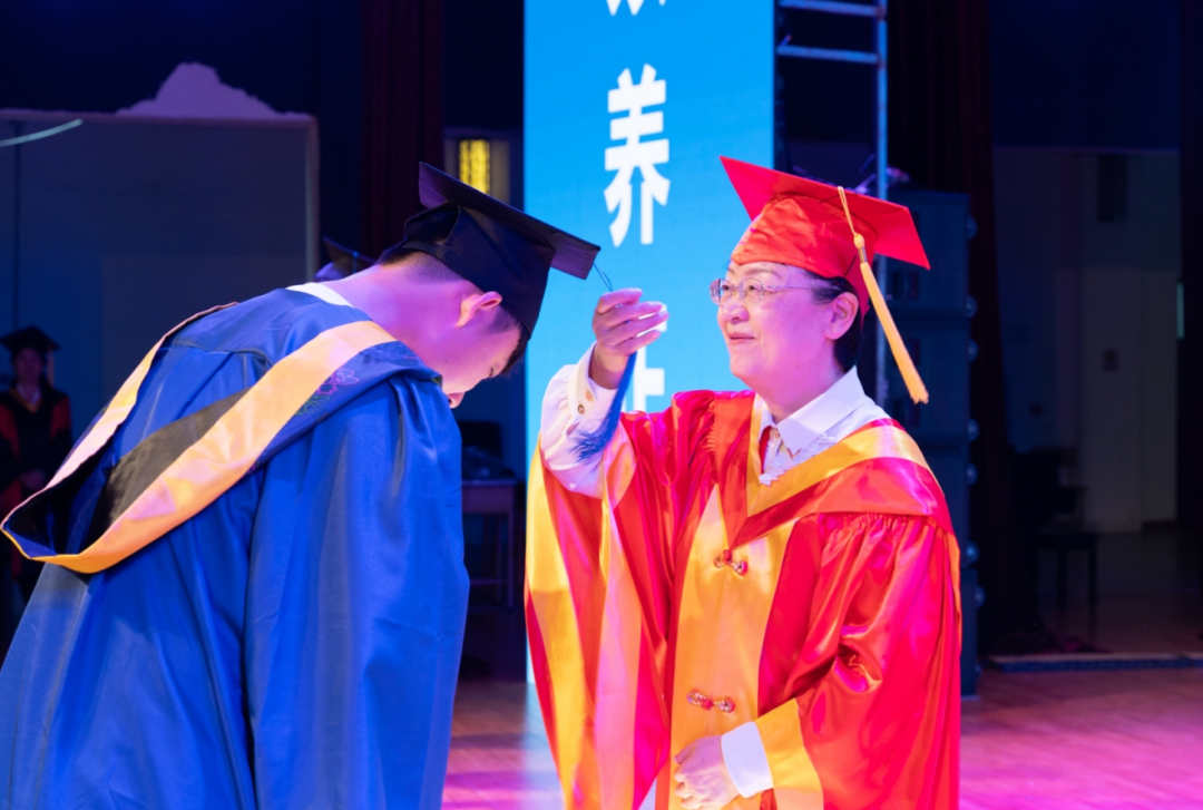徐梅为硕士毕业生代表逐一颁授硕士学位,学校领导和学院领导为本科毕业生代表颁授学士学位。学子们身着学位服,依次上台接受拨穗礼,现场闪光灯不断,记录下荣耀瞬间。