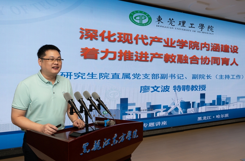 廖文波紧扣 “现代产业学院内涵建设” 与 “产教融合协同育人” 主线,以东莞理工学院与东莞市“共生共荣”的发展历程为切入点,全面阐释了产教融合的核心要义。他指出,地方应用型大学的人才培养质量一定程度上反映着中国高等教育的整体质量,改革创新是地方应用型大学高质量发展的必经之路,推进产教融合和建设现代产业学院是地方高校创新发展的重要举措和载体。