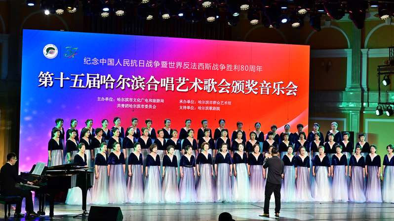 8 月 30 日,哈尔滨歌剧院音乐厅内座无虚席、歌声飞扬,由哈尔滨市文化广电和旅游局、共青团哈尔滨市委员会主办,哈尔滨市群众艺术馆承办的 “纪念中国人民抗日战争暨世界反法西斯战争胜利 80 周年 ——第十五届哈尔滨合唱艺术歌会颁奖音乐会”盛大举行。作为本次歌会的重要参演力量,我校东方之声合唱团与东方老年大学星空女子合唱团携手登台,以深情激昂的演唱致敬历史、歌颂和平,展现了东方师生与东方老年大学的精神风貌。