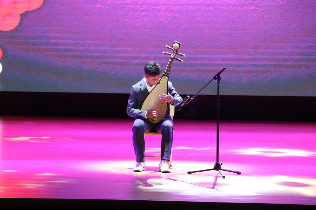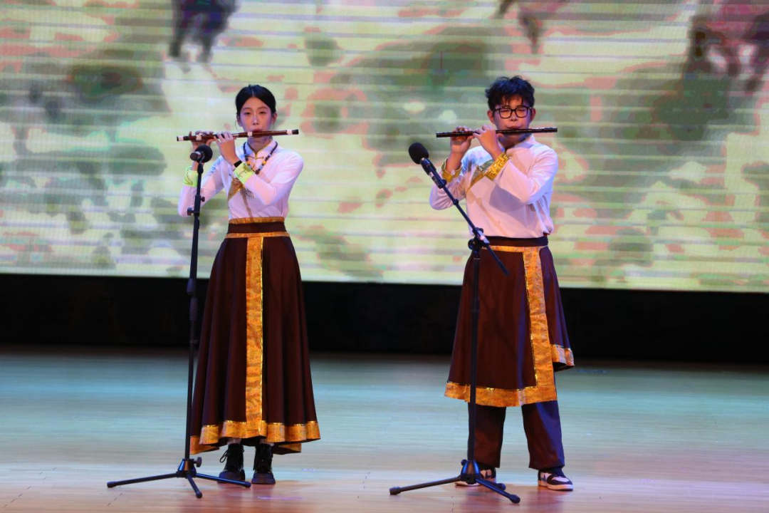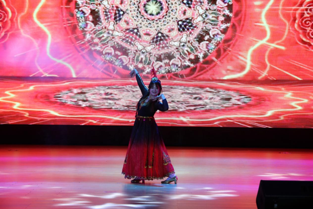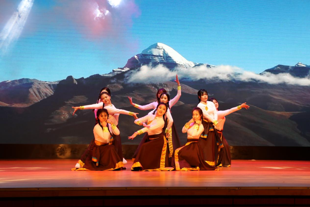 《天地龙鳞》的恢弘唱腔响彻讲堂,大气磅礴的曲风尽显青春的豪迈;2025级新生辅导员们带来的诗朗诵《师者心音,礼赞祖国》打动人心,他们以深情饱满的语调、真挚动人的情感,既道出了教师对每一位新生的殷切期望,也抒发了全体师生对祖国的无限热爱与崇高敬意,让家国情怀在字里行间悄然扎根。舞台上,不同风格的节目轮番登场。《年轮》《相思》《我的太阳》等歌曲,或温柔细腻,或深情激昂,用旋律表达着青春里的喜怒哀乐;独舞《阿依克孜》舞姿灵动,每一个转身与跳跃都尽显舞者的功底;《鸳鸯戏》《上铃鼓》则传递了浓郁的传统与民族艺术魅力,让人沉醉其间;2025级留学生代表带来的舞蹈《太阳舞》独具异域风情,生动呈现了不同文化的碰撞与交融;街舞《Thunder》动感十足,舞者们以利落动作与饱满状态,将青春活力诠释得淋漓尽致;武术表演《返璞归真》刚劲有力,一招一式皆展现出中华武术的精气神;藏族舞《康定情歌》更是将现场氛围推向高潮,舞者身着特色服饰,伴随悠扬旋律翩翩起舞,既生动展现了藏族文化的绚丽多彩,也让在场学子深刻体会到民族文化的独特魅力与强大凝聚力,进一步增进了各民族间的文化认同与情感联结。