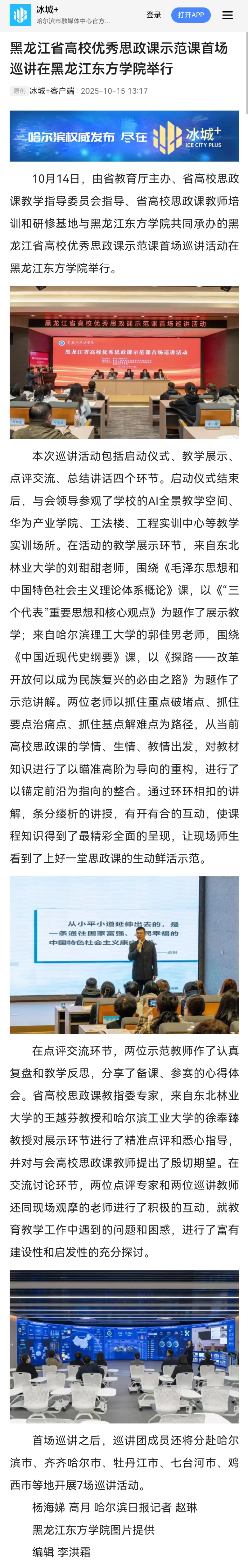 冰城+:黑龙江省高校优秀思政课示范课首场巡讲在黑龙江东方学院举行