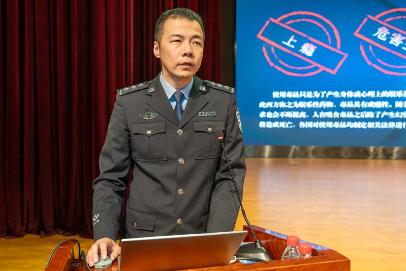 宣讲环节中,哈尔滨市公安局刑侦支队电诈犯罪侦查大队三中队教导员陈思思以“防诈反诈 青春无诈”为题,围绕当前校园高发的电信网络诈骗类型,结合真实案例拆解诈骗分子的作案手法与话术陷阱,深入浅出地讲解了识别、防范诈骗的实用技巧,引导学生树立 “不轻信、不透露、不转账” 的反诈意识。平房区公安分局警官张越则聚焦“毒品的识别与禁毒防范”,从毒品的种类、危害及法律后果等方面展开,通过图文结合的方式让学生直观认识新型毒品的伪装形式,进一步强化了“珍爱生命、远离毒品”的禁毒理念。