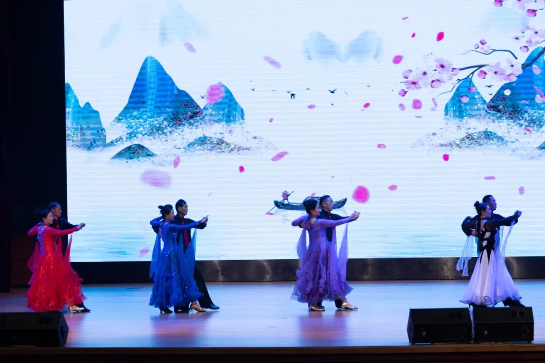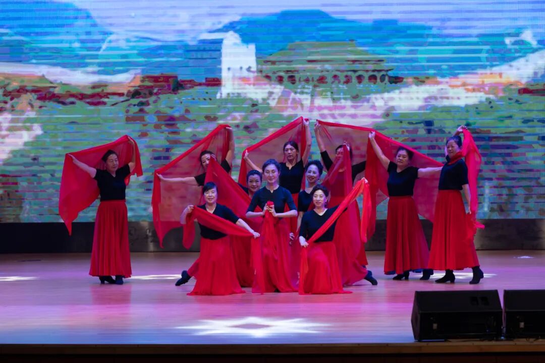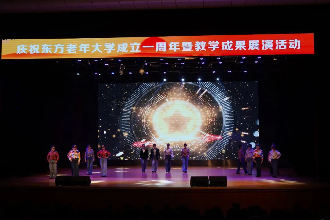 东方老年大学校本部新疆舞班带来的群舞《最美新疆》、民族舞班群舞《起舞》、中国风健身舞班蒙古族筷子舞《白马谣》、瑜伽班舞韵瑜伽《万疆流韵》、红蜻蜓摩登舞团交谊舞与国标舞《水乡温柔》《我和我的祖国》、水兵舞团《厉害了我的国》和一爱校区民族舞班群舞《不忘初心 前进中国》展现了老年群体老有所学、老有所乐的精神风貌与家国情怀。