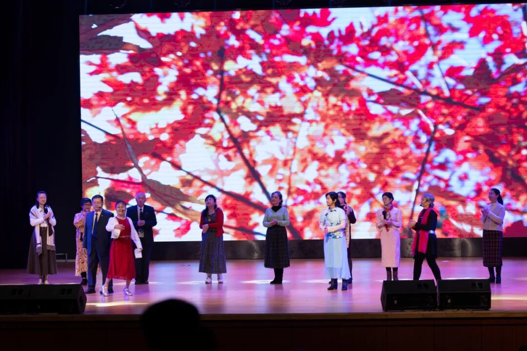 文字是无声的画卷,语言是有声的山河。东方老年大学校本部朗诵与主持教学班的诗朗诵《如果没有李白》《荡气回肠唐宋篇》和中国古诗词赏析班古诗词朗诵《先秦诗韵——风雅兴寄》用激昂的语调表达山河壮阔;俄罗斯国情与俄语口语班带来俄语舞台剧《秋天的相逢》;朗诵团朗诵《前浪》用深情的朗诵中,读懂“前浪”的赤诚与坚守,致敬那些滚烫的岁月与初心;东方老年大学东北抗联艺术团带来情景歌剧《妈妈我要出征》歌颂了不屈不挠的东北抗联精神。