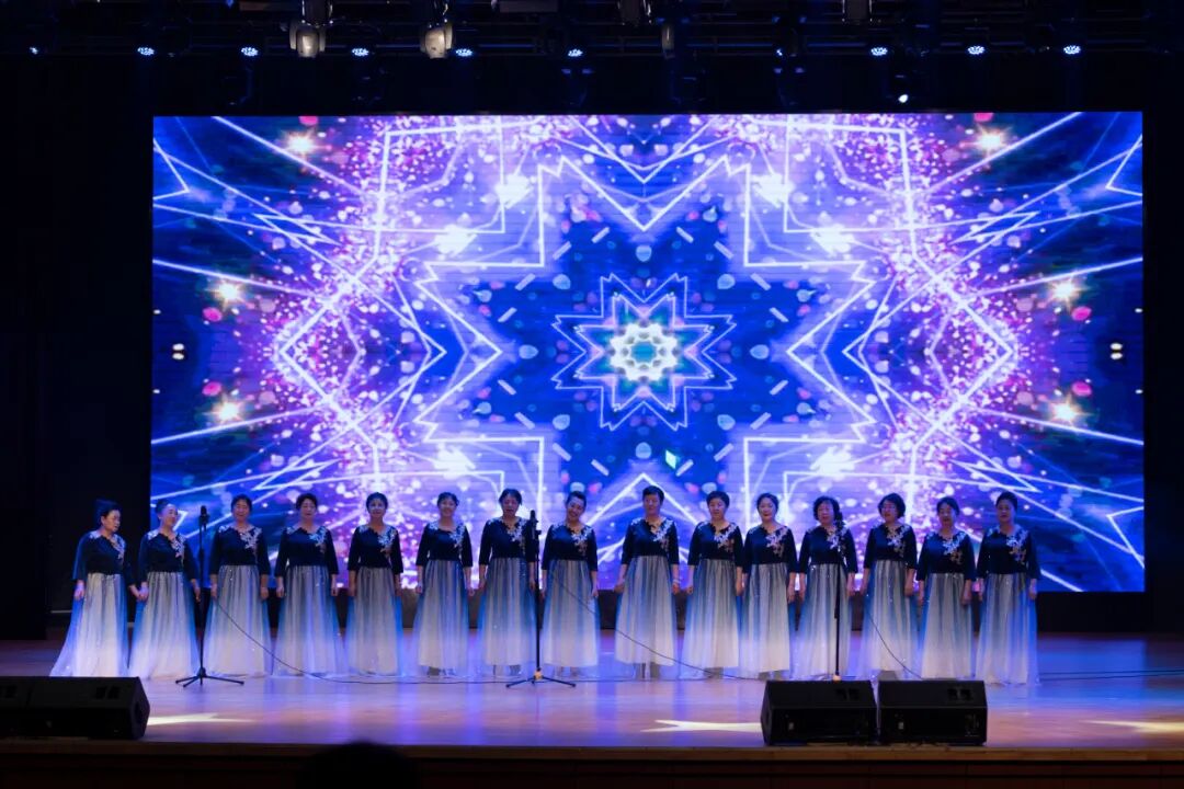 东方老年大学校本部合唱教学班混声合唱《保卫黄河》,合唱团混声合唱《壮美延安》、男声合唱《九月九的酒》、女声合唱《青春舞曲》,一爱校区合唱班混声合唱《祖国不会忘记》、星空女子合唱团合唱《歌唱二小放牛郎》《万泉河水》等经典曲目旋律悠扬,饱含对生活的热爱与对时代的赞颂。