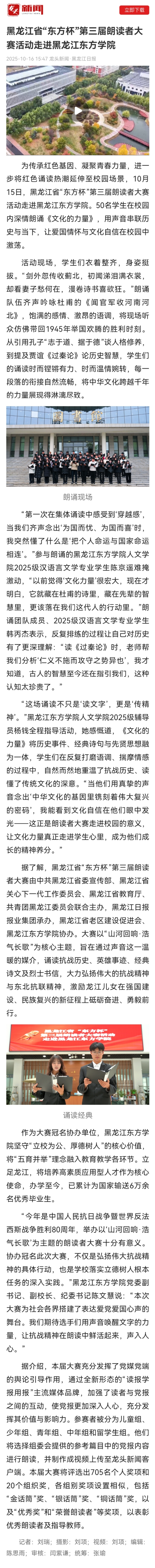龙头新闻:黑龙江省“东方杯”第三届朗读者大赛活动走进黑龙江东方学院