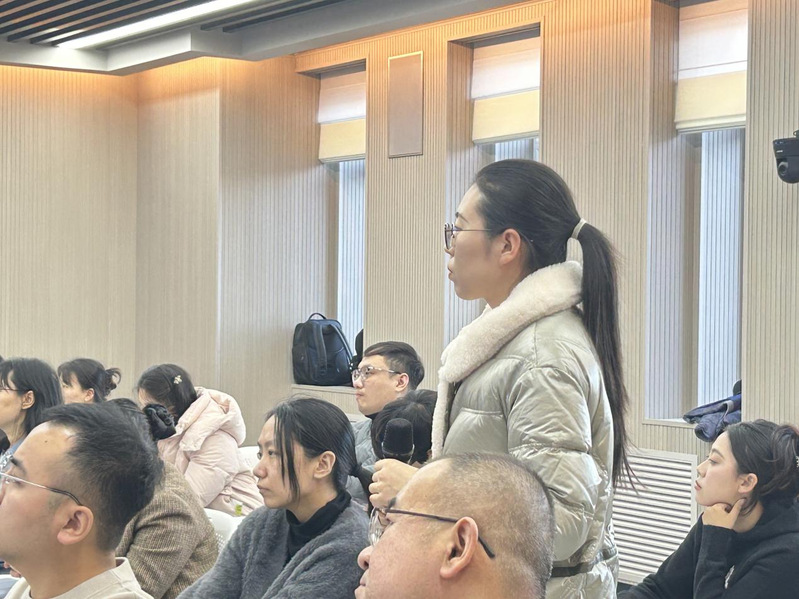 在互动提问环节,现场气氛热烈,学术思辨的火花频频迸发。来自信息工程学院、机电工程学院、经济管理学院、基础教学研究部等多个学院的教师纷纷结合自身学科特点与教学实践中的困惑,踊跃提问。问题涵盖“如何利用AI为文科课程设计更具思辨性的研讨话题”“在理工科实验教学中,AI虚拟仿真与传统动手操作如何平衡与衔接”等方面。