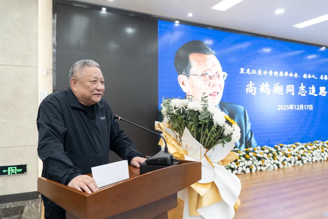 黑龙江东方学院原副校长陈光深情回忆了与尚鹤翔先生相处的点点滴滴。他表示,尚校长在东方学院创办初期以及新校区建设的关键时刻,面对重重困难,始终保持着坚定的信念和乐观的态度,展现了卓越的领导力和决策力,他的思想无时无刻不在激励着大家奋发前进。