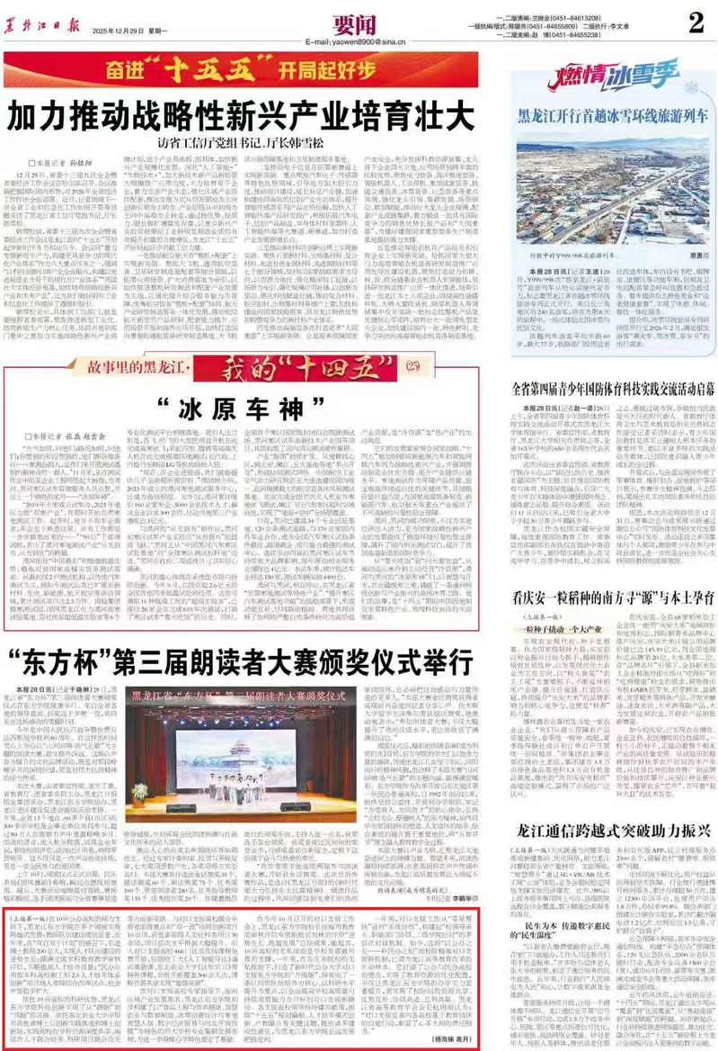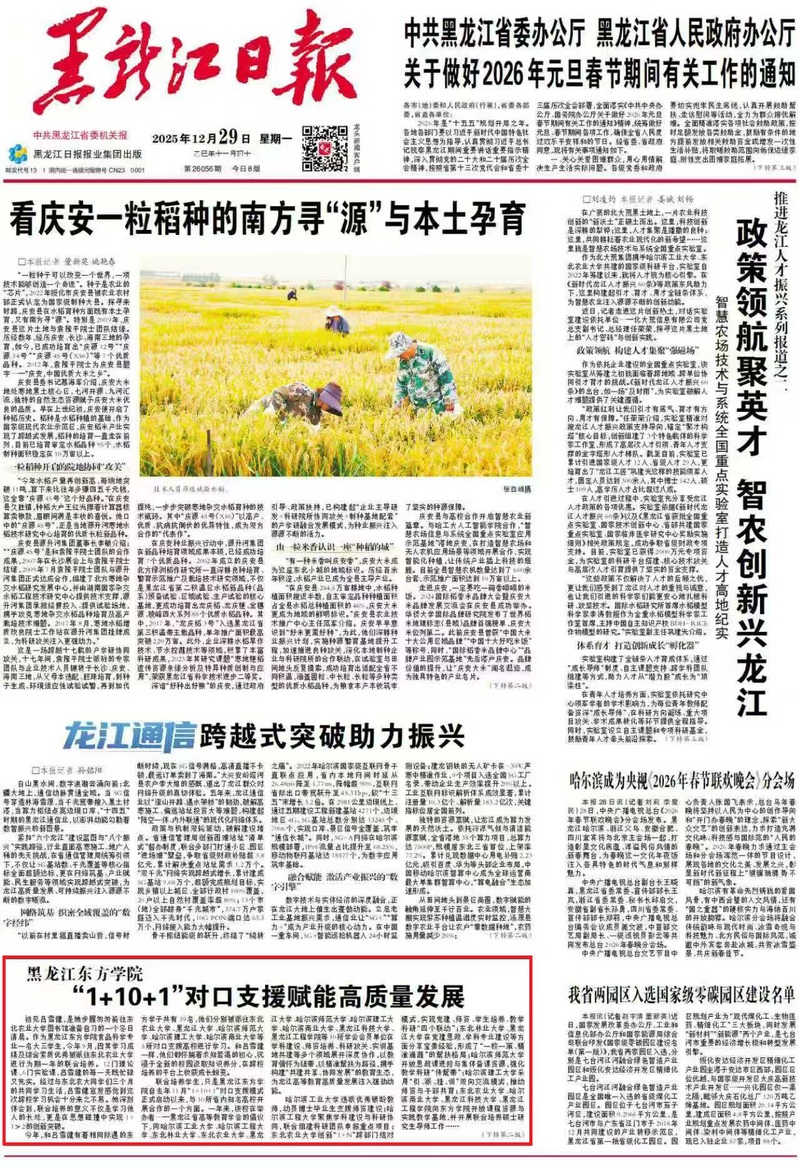 黑龙江日报头版:黑龙江东方学院 “1+10+1”对口支援赋能高质量发展