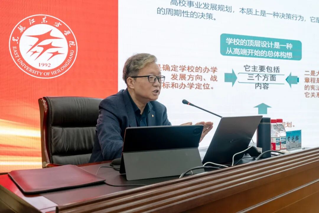 艾光辉教授立足新时代高等教育发展背景,围绕高校事业发展规划的本质属性、顶层设计内涵、规划类型区分等内容,系统阐释了高校发展规划在学校治理体系中的核心地位。他指出,高校事业发展规划本质上是一种面向未来的周期性重大决策,是学校顶层设计的重要组成部分,应当与办学理念、大学章程建设相互衔接、协同推进。