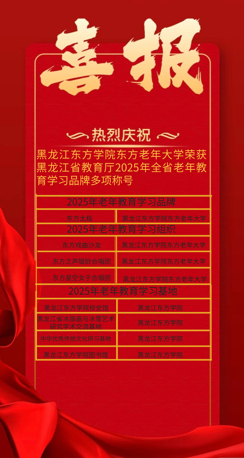 2026年,东方老年大学将以学校十五五战略规划为引领,以创新为动力,以融合为路径,聚焦老年教育高端品牌打造、加快数智化建设、培育特色成果和继续教育一体化发展,为学校内涵式学科建设和专业发展,为龙江经济社会振兴、学习型社会建设贡献更大力量!(东方老年大学 供稿)