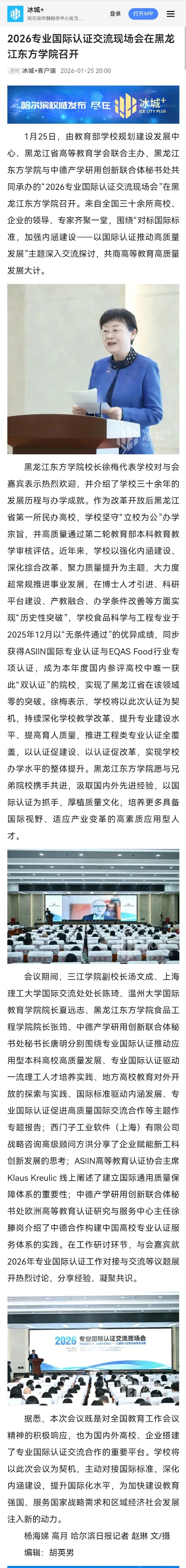 冰城+:2026专业国际认证交流现场会在黑龙江东方学院召开