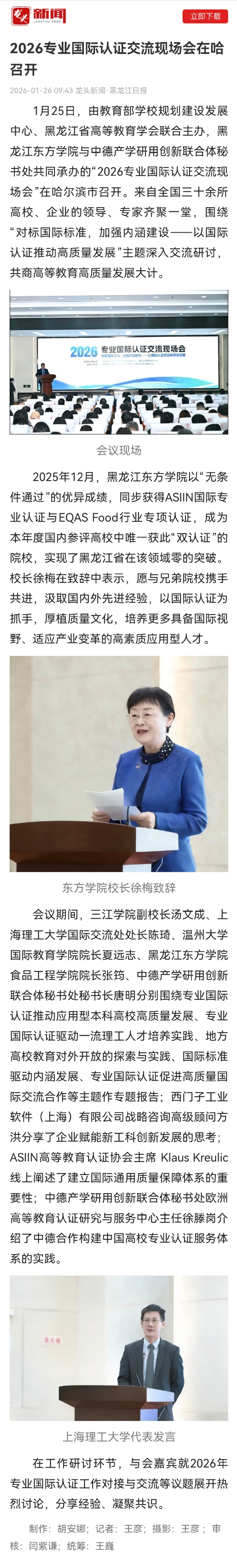 龙头新闻:2026专业国际认证交流现场会在哈召开