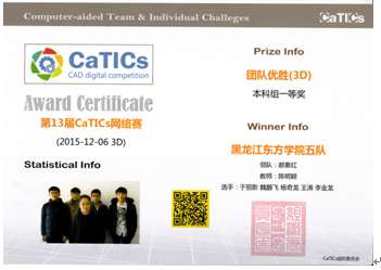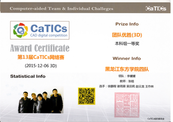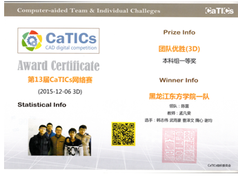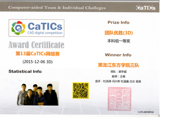 1、2015年12月24日,第13届CaTICs三维建模网络赛在全国同步开展,我院代表队在本科组中荣获团体一等奖,这是我院自参加此项竞赛中,取得的最好成绩。