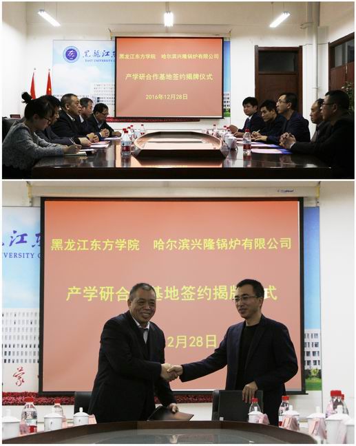 2016年12月28日,机电工程学部与哈尔滨兴隆锅炉有限公司就科研合作、人才培养、技术服务、人力资源交流等方面建立战略合作关系达成共识,签署了校企产学研合作基地协议并为基地揭牌,标志着双方校企合作正式启动。我院蔡柏岩副院长及机电工程学部相关负责同志同哈尔滨兴隆锅炉有限公司董事长马永柱等一行五人参加本次活动。