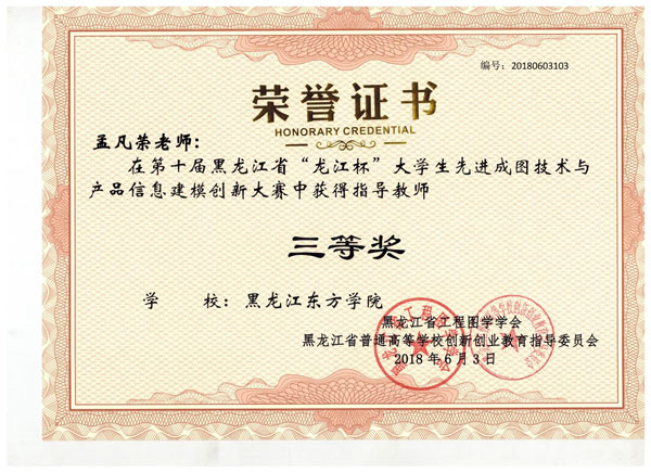 我学部学生在2018年6月2日-6月3日举行(哈尔滨工业大学第二校区)的 “龙江杯”先进成图技术与产品信息建模创新取得了团体三等奖的好成绩。指导教师:郭宇超、崔海军、孟凡荣。参赛学生: 白培文、关宇、苍天琦、杜峻明、陈鸣。