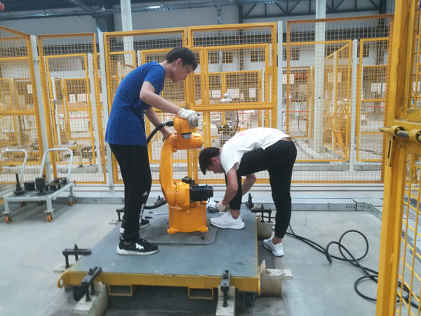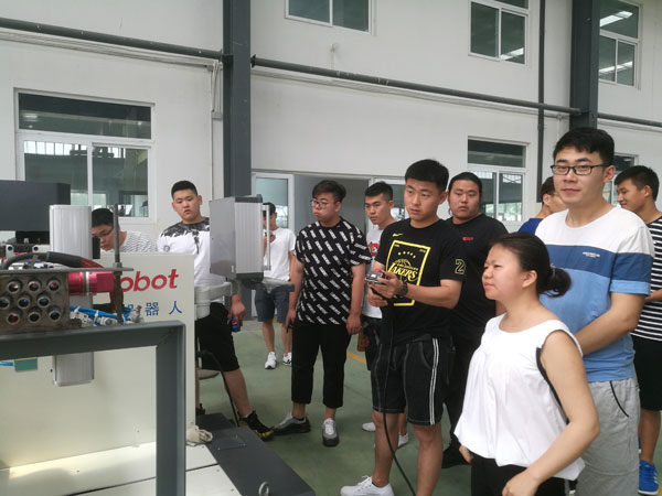 在芜湖期间,学生在哈特机器人产业技术研究院进行了“机器人系统集成技术”、“机器人视觉技术”和“工业机器人离线编程仿真”三门理论课的学习。掌握了工业机器人弧焊工作站系统集成技术、点焊工作站系统集成技术、自动生产线系统集成技术;了解视觉系统组成及算法功能和特点;掌握基于Robot Studio的弧焊机器人离线编程应用和基于Robot Studio的激光切割工作站的建立。同时,学生分别在埃夫特智能装备公司、行健智能机器人有限公司、安徽戎发冲压机器人有限公司等三家企业进行生产实习。主要在机器人本体装配,机器人调试,机器人电控柜装配,机器人夹具及机器人系统集成等岗位上进行生产实践。通过生产实习,培养了学生团队合作精神、牢固树立群体意识,及个人智慧只有在融入团体中才能最大限度的发挥作用。通过与师傅学习,培养了学生艰苦朴素的优良作风,谦虚谨慎的工作态度和一丝不苟的敬业精神。在生产实践中体会到了严格遵守纪律、统一组织及协调一致是现代化大生产的需要,也是当代大学生所务必遵守的,进一步的提高了学生的组织观念。这次实习对学生巩固和加深所学的理论知识,培养独立工作潜力、接触生产实际、加强劳动观念、培养动手能力和理论与实践相结合的能力等方面亦具有重要的意义。