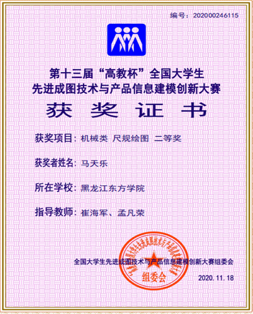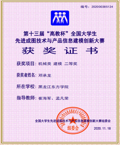 “高教杯”全国大学生先进成图技术与产品信息建模创新大赛由教育部高等学校工程图学课程教学指导委员会、中国图学学会制图技术专业委员会和中国图学学会产品信息建模专业委员会联合主办的图学类课程最高级别的国家级赛事,与“互联网+”大学生创新创业大赛、“挑战杯”创业计划大赛、全国大学生机械创新设计大赛等共同列入全国普通高校学科竞赛排行榜单,位列24,是国家级学科竞赛重要赛事之一。本次进入决赛共有394所院校6900多人,竞赛项目涵盖理论知识、构型设计、尺规绘图、计算机绘图、轻量化设计、3D打印6项内容,经过激烈角逐我院代表队以团体第143名取得了团体三等奖1项,个人基础知识、尺规、建模一等奖1项、二等奖6项、三等奖3项、指导教师三等奖2项。