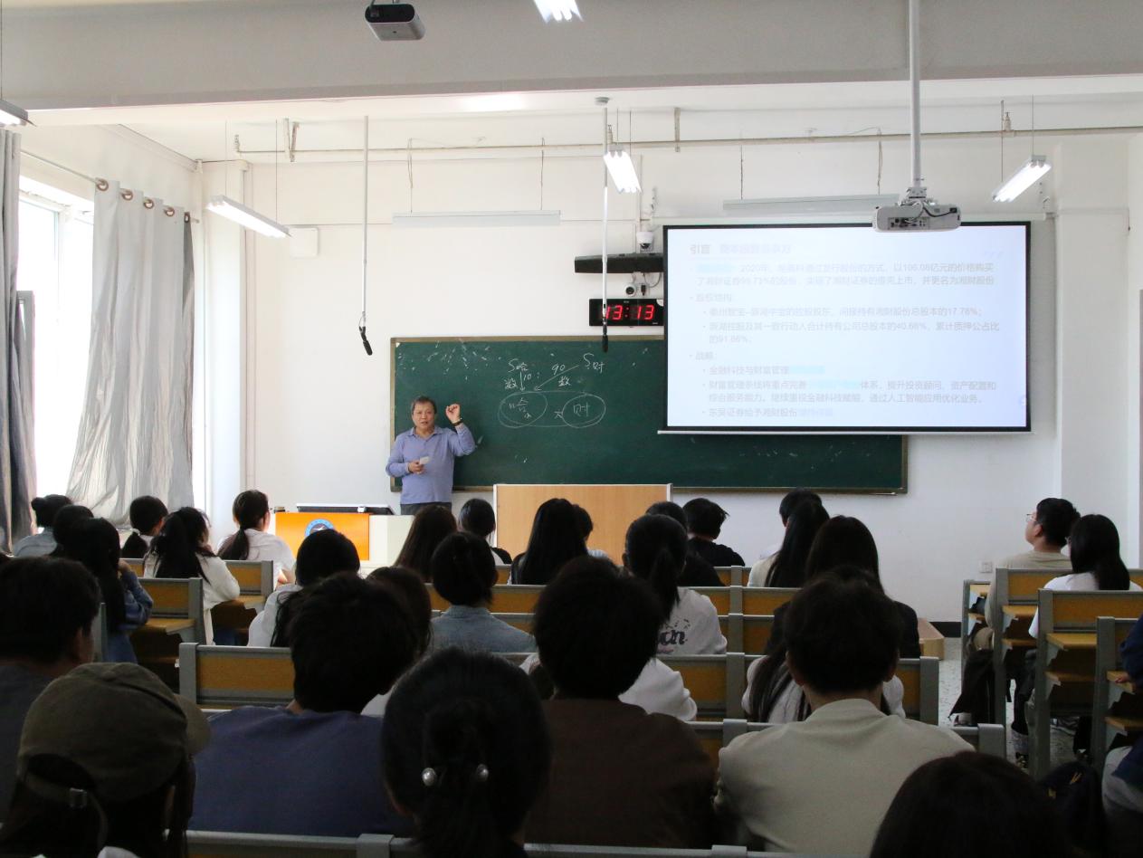 讲座现场,彭彦敏老师围绕湘财股份吸收合并大智慧这一案例展开深入解析。他首先介绍了双方证券服务与金融科技业务概况,让同学们对企业的基本业务布局有了清晰认识。接着,从规模、质量维度细致解析财务数据,对比双方核心优劣势,并结合股东结构,详解换股、募资等方案要点,剖析“金融+科技”整合协同逻辑,为同学们揭示企业资本运作与业务融合的深层机制。