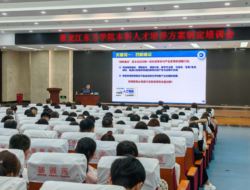 7月3日下午,黑龙江东方学院在图书馆报告厅召开人才培养方案制定专题培训会议。本次会议旨在优化明确人才培养目标,科学制定人才培养方案,培养应用技术人才。会议邀请哈尔滨理工大学沈涛教授作题为“打造面向产出的培养方案 提升应用型人才培养能力”的主题培训讲座。全体校领导、教务处、教育教学质量保障与评估中心全体工作人员以及各教学单位班子成员等教师代表参加会议。