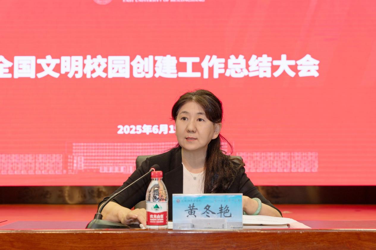 黄冬艳强调,文明校园创建只有进行时,没有完成时,只有更好、没有最好。获得“全国文明校园”称号,是对过去工作的肯定,更是对未来发展的鞭策和鼓舞。下一步,学校党委要以更高的站位加强精神文明建设组织领导,以更实的举措推动精神文明建设常态长效,以更大的力度推进精神文明建设共建共享。希望全校教职工以饱满如炽的热情、坚定如磐的信心、务实如铁的作风,凝聚奋进合力,推动文明校园创建工作向更宽领域、更广范围、更高水平迈进,为学校“十五五”时期事业发展,为把学校建设成为特色鲜明的高水平应用技术大学凝聚更加强大的精神力量!