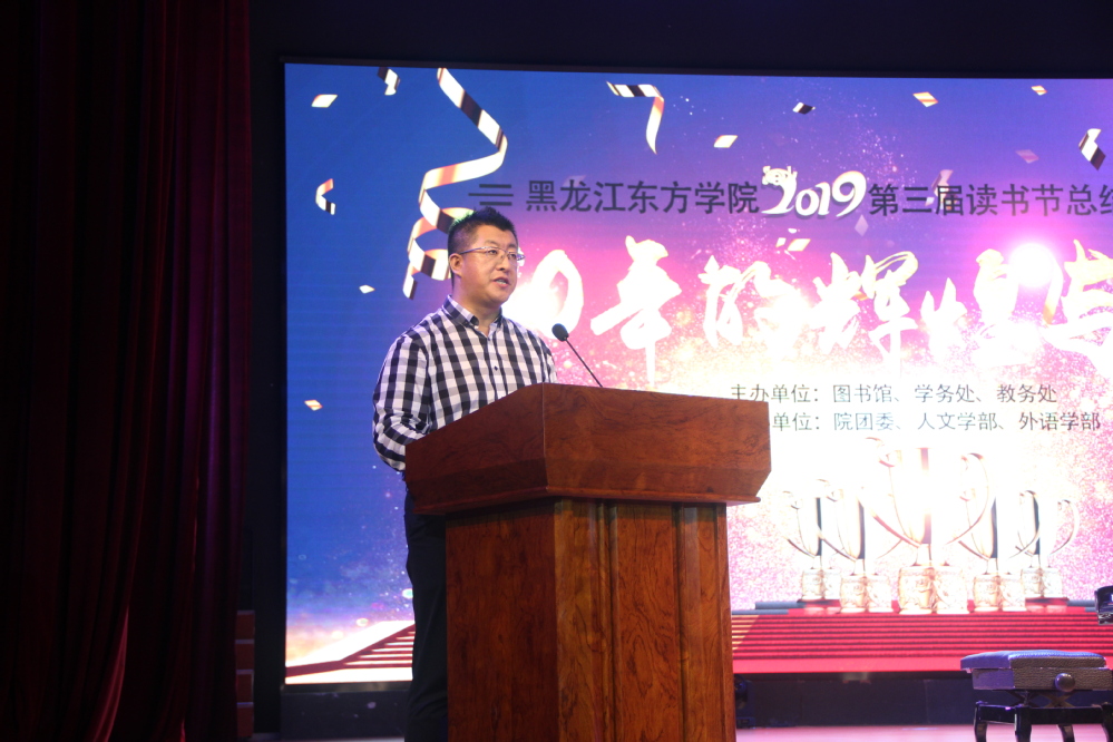 6月19日下午,由图书馆、学务处、教务处主办,院团委、人文学部、外国语学部协办的黑龙江东方学院第三届读书节总结表彰暨闭幕式,在养正讲堂圆满落幕。学院副院长、党委副书记李世泽,副院长陈光、蔡柏岩出席闭幕式.图书馆、学务处、教务处、外国语、思政教研部、人文学部负责人,以及中国知网黑龙江分公司销售副总兼教育事业部总经理卞妍,北京超星集团黑龙江分公司教图事业部总经理马群,博看期刊数据公司销售经理王庆云等应邀参加了此次闭幕式。闭幕式由学务处高文举处长主持,图书馆全体馆员及各学部师生代表近千人参加了此次闭幕式。