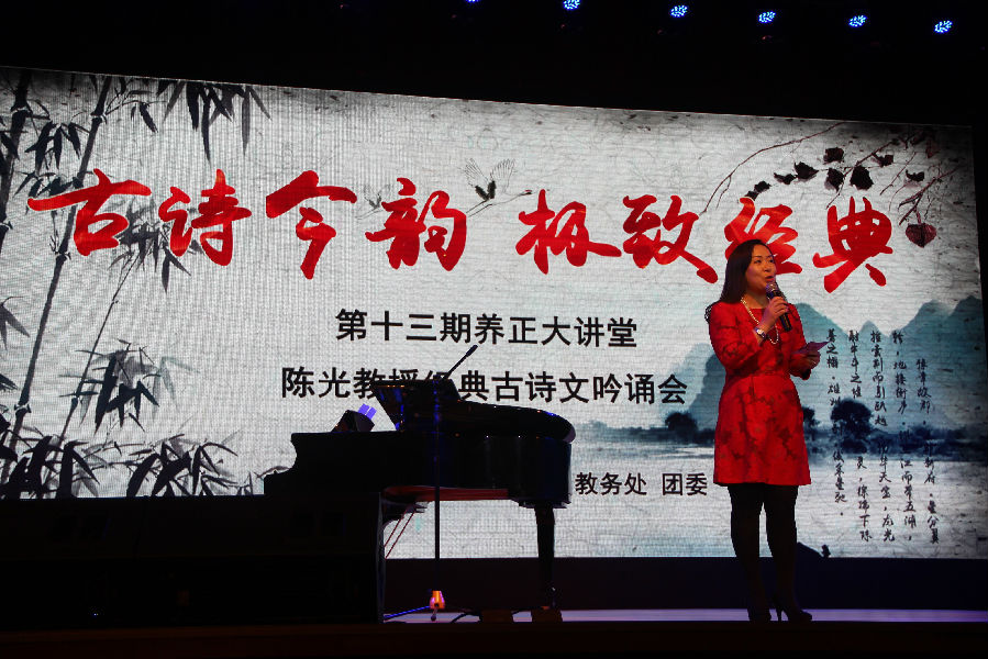 4月21日晚,由图书馆、学务处、团委联合主办的“古诗今韵,极致经典”专场经典古诗文吟诵会在活动中心养正讲堂顺利召开,本次吟诵会特邀我院副院长陈光教授倾情演出。吟诵会由建筑工程学部副主任刘学伟主持,并特邀曲子光教授进行现场钢琴配乐。