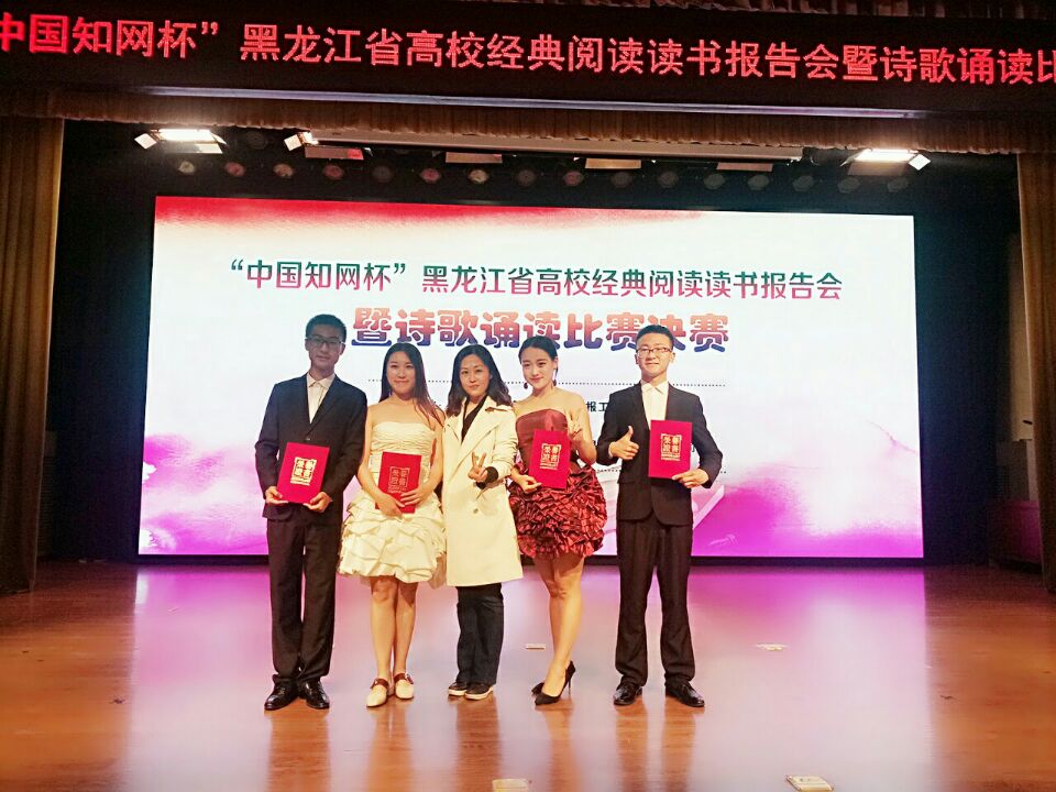 我院图书馆积极响应省高校图工委的以“同读名家经典,共建书香校园”为主题的系列活动,并携手学务处、教务处、团委及学院九个学部联合主办的黑龙江东方学院首届读书节系列活动之超星杯“诵名家经典,赏诗词之蕴”诵读比赛,从中共选出3支代表队参加此次省高校诵读比赛。其中,全灏、郑童《蚂蚁》和韩爽《为祖国而歌》荣获优秀奖,于双琦、于海超、邱双、张雨佳、李萱《嘱托》入围进入决赛,我院图书馆荣获优秀组织奖。