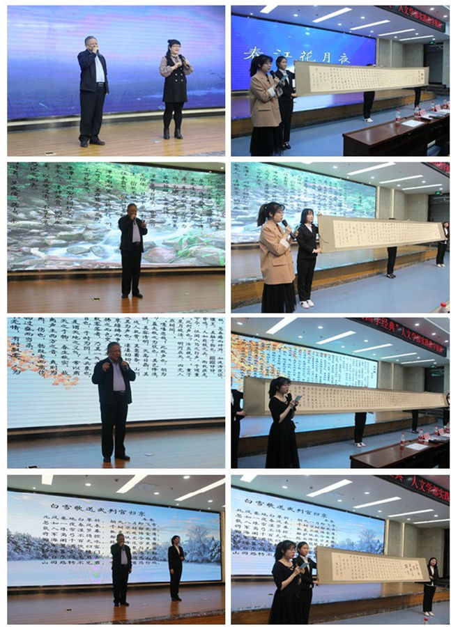 在活动前,陈光副院长书写了《春》、《夏》、《秋》、《冬》4个经典名篇——《春江花月夜》、《小石潭记》、《秋声赋》、《白雪歌送武判官归京》等书法作品,提前让师生们体会到经典诗文的文学韵味和书法作品的文字魅力。