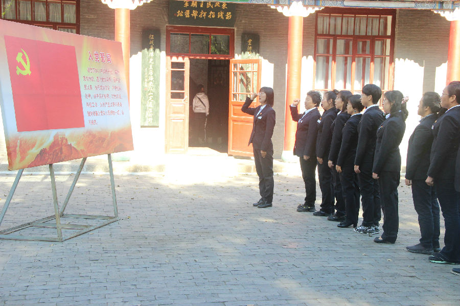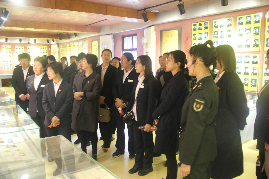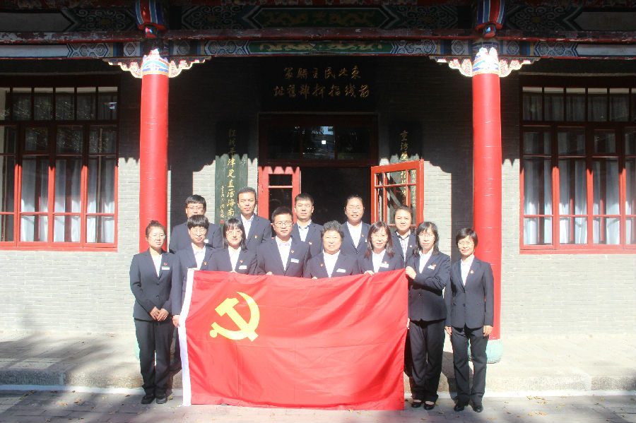 在双城的东北民主联军前线指挥部(旧址),共有东西两院。两个单位的全体党员共计20人先来到指挥部的东院,东院为前线指挥部及后勤人员居住场所。看到院落中简陋的工作和居住环境,在联想到我们现今幸福的生活。参观的党员大受教育深受感动,纷纷感慨今日幸福生活的来之不易。就是在这样艰苦的环境下,第四野战军的将领指挥了新开岭战役,三下江南、四保临江等著名的战役,为解放全中国,建立新中国打下了坚实的基础。接下来大家走进西院,在西院的四野将帅展厅中,大家看到了林彪,罗荣桓,彭真,刘亚楼等一批为新中国成立而浴血奋战的四野将领,也为有这么多从四野走出去的开国功勋将领而感到无比的自豪。参观结束之后,大家在党旗下庄严的举起右手,在革命先辈曾经战斗过的地方,再次向党旗宣誓,再次重温了自己曾经向党许下的无比庄严的誓词。
