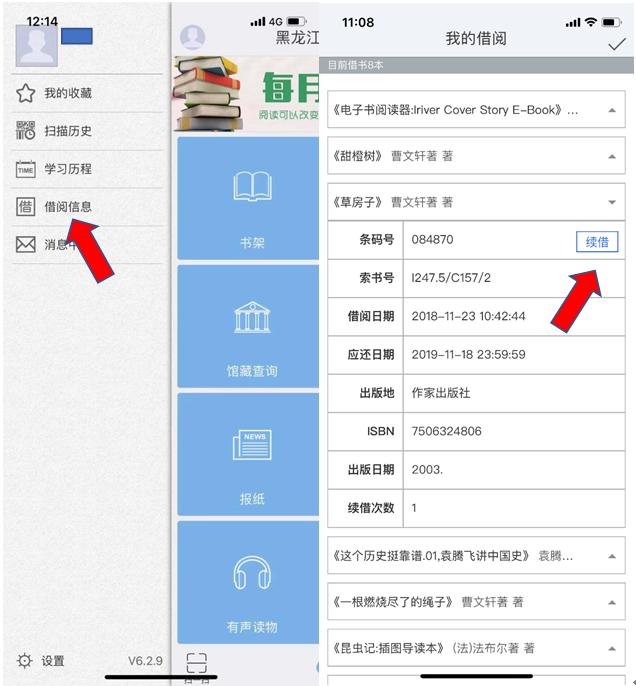 点击“借阅信息”-找到想要续借的图书,点击“续借”。