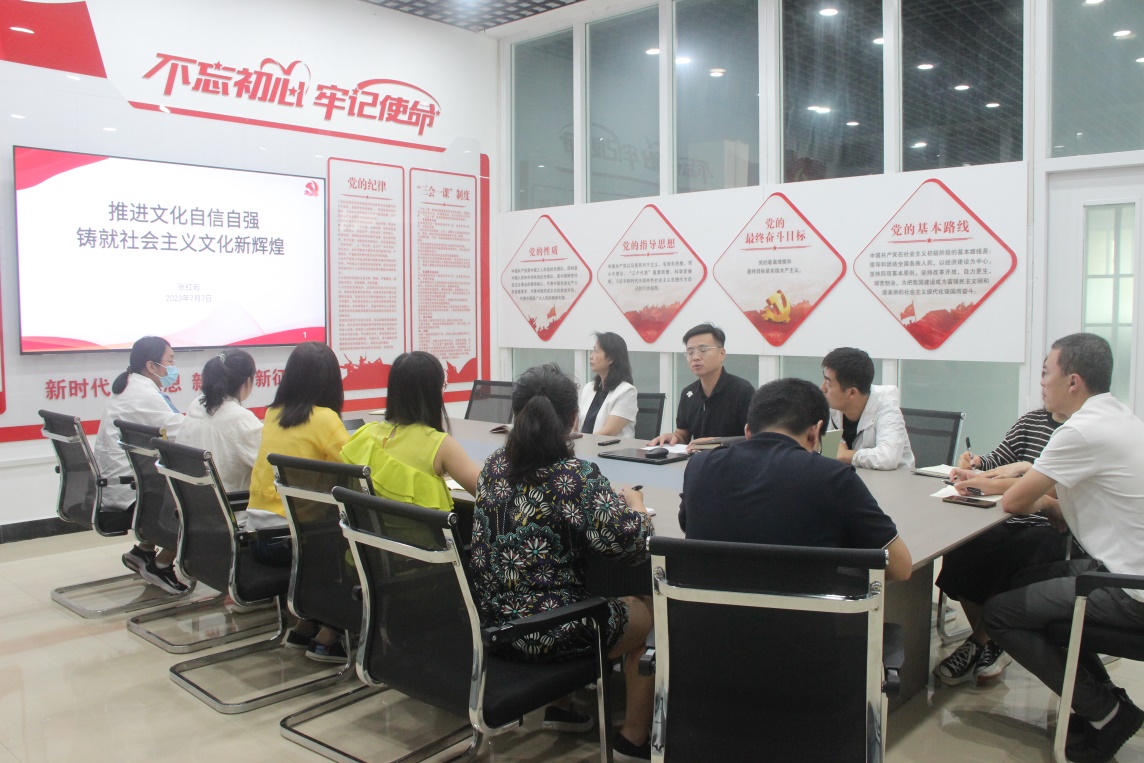 7月7日,图书馆党支部书记、副馆长张红岩为全体党员主讲了“推进文化自信自强、铸就社会主义文化新辉煌”党课。党课首先介绍了新时代世情国情党情的深刻变化和加强文化建设的重要性;其次分析了为什么文化自信自强是实现中华民族伟大复兴的强打精神力量,让党员们了解了文化自信自强的内涵;最后讲述了如何在文化强国建设中铸就社会主义文化新辉煌。